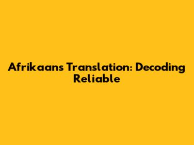 Afrikaans Translation: Decoding 'Reliable'