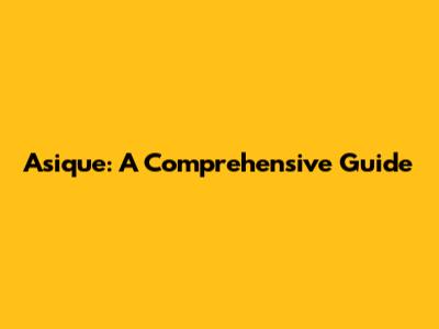 Asique: A Comprehensive Guide
