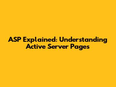 ASP Explained: Understanding Active Server Pages