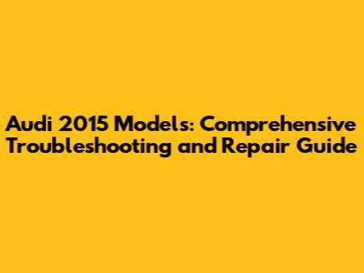 Audi 2015 Models: Troubleshooting & Repair