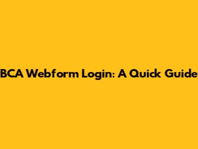 BCA Webform Login: A Quick Guide