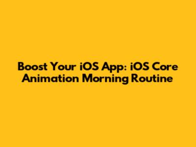 Boost Your IOS App: IOS Core Animation Morning Routine