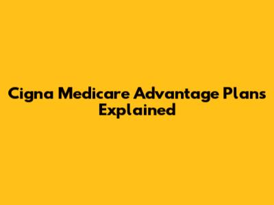 Cigna Medicare Advantage Plans Explained