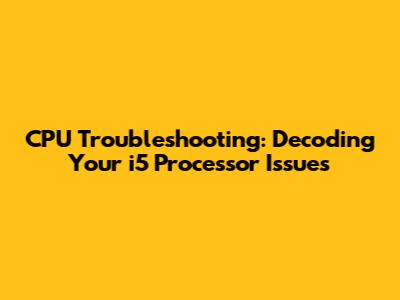 CPU Troubles? Decode Your I5 Processor Issues!