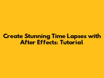 Create Stunning Time Lapses With After Effects: Tutorial