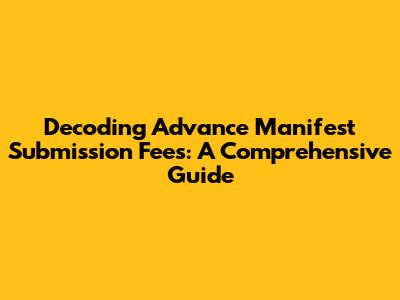 Hey everyone, let's dive into the often-confusing world of advance manifest submission fees! This is a super important topic if you're involved in international shipping and logistics, but it can feel like a maze if you're not familiar with the details. This guide is designed to break down everything you need to know, from what these fees are all about to who pays them and how to potentially minimize them. So, grab a coffee, and let's decode this together!