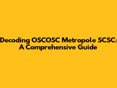 The Significance of OSCOSC Metropole SCSC: Why It Matters