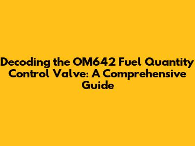 Decoding The OM642 Fuel Quantity Control Valve: A Comprehensive Guide