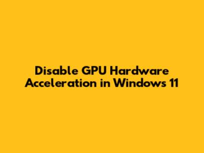 Disable GPU Hardware Acceleration In Windows 11