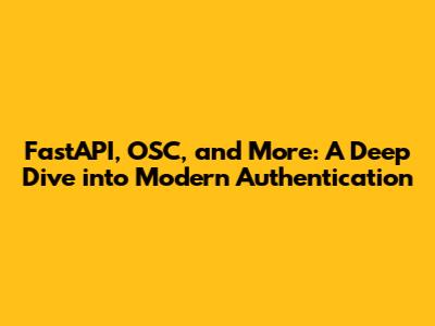 FastAPI, OSC, And More: A Deep Dive Into Modern Authentication