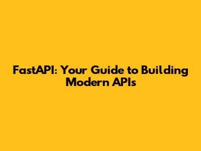 FastAPI: Your Guide To Building Modern APIs