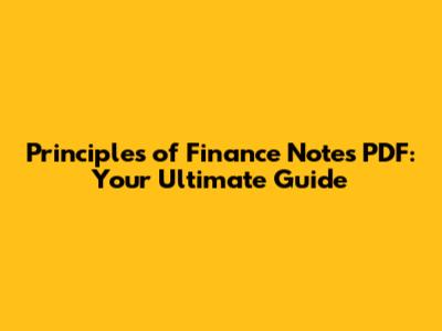 Finance Principles Notes PDF: Your Ultimate Guide