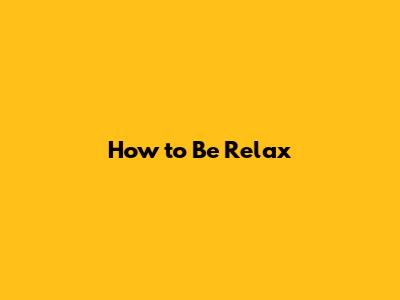 How To Be Relax