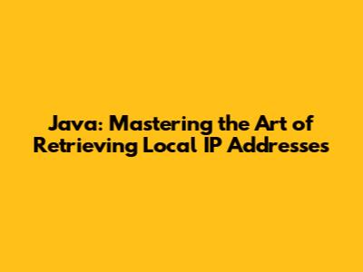 Java: Mastering The Art Of Retrieving Local IP Addresses