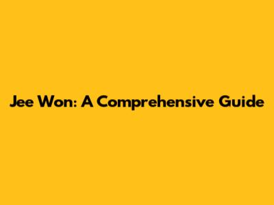 Jee Won: A Comprehensive Guide