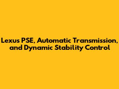 Lexus PSE, Automatic Transmission, And Dynamic Stability Control
