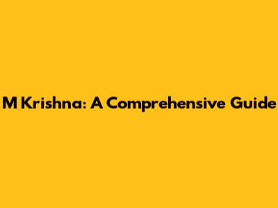 M Krishna: A Comprehensive Guide