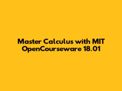 Master Calculus With MIT OpenCourseware 18.01