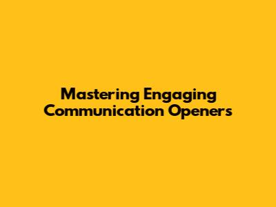 Mastering Engaging Communication Openers