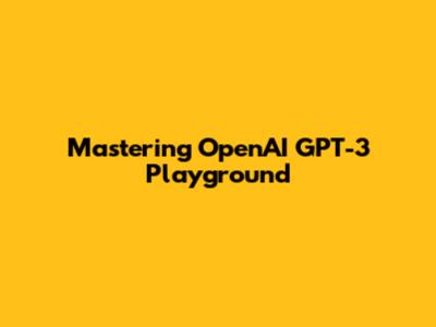Mastering OpenAI GPT-3 Playground