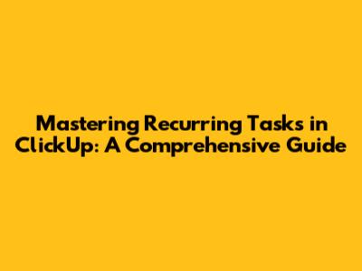 Mastering Recurring Tasks In ClickUp: A Comprehensive Guide