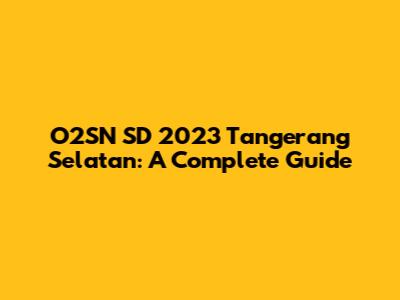 O2SN SD 2023 Tangerang Selatan: A Complete Guide