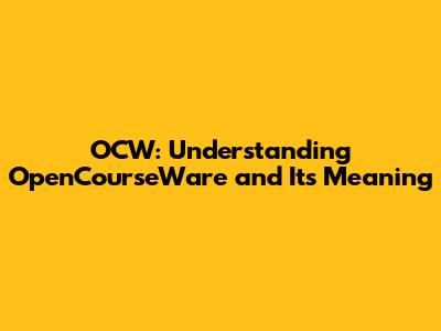 What Does OCW Stand For?