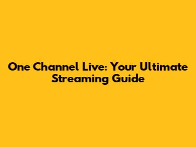 One Channel Live: Your Ultimate Streaming Guide