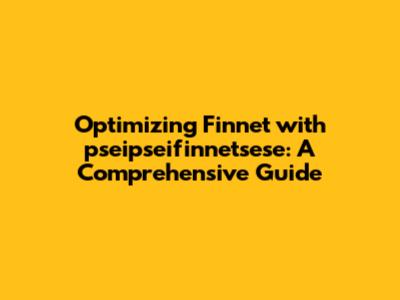 Optimizing Finnet With Pseipseifinnetsese: A Comprehensive Guide