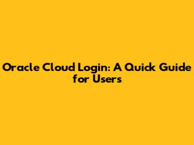 Oracle Cloud Login: A Quick Guide For Users