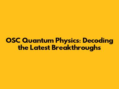 OSC Quantum Physics: Decoding The Latest Breakthroughs