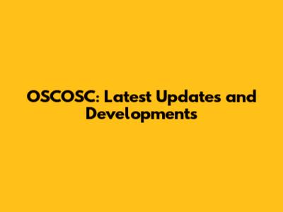 OSCOSC: Latest Updates And Developments