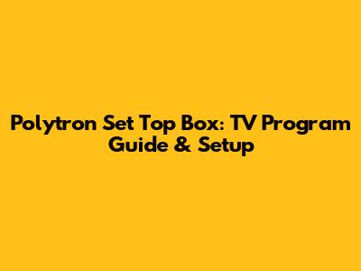 Polytron Set Top Box: TV Program Guide & Setup