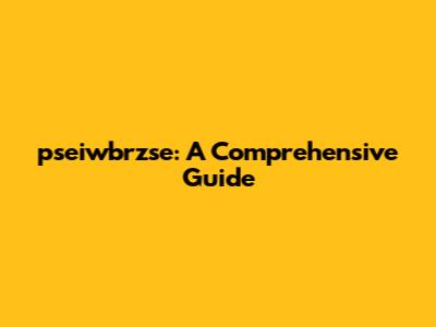 Pseiwbrzse: A Comprehensive Guide