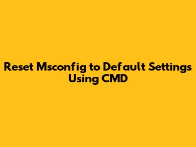 Reset Msconfig To Default Settings Using CMD