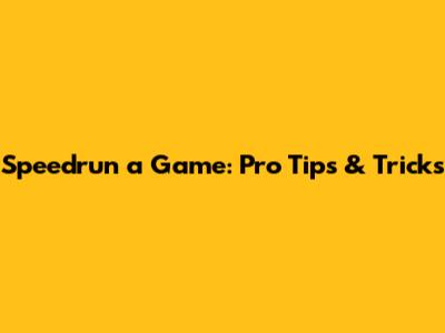 Speedrun A Game: Pro Tips & Tricks