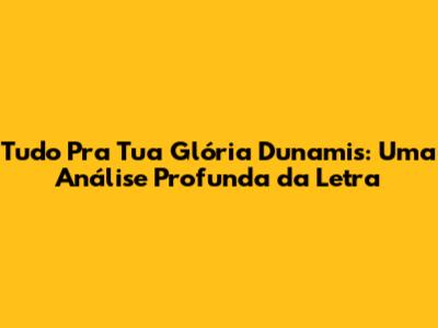 Em suma, "Tudo Pra Tua Glória Dunamis" é mais do que uma música; é um convite à adoração, um hino de entrega e uma declaração de fé. A letra nos lembra da importância de viver para a glória de Deus, de colocá-Lo em primeiro lugar e de buscar Sua vontade em todas as áreas da nossa vida. A música nos inspira a renunciar ao ego e a nos entregarmos completamente a Deus, reconhecendo Sua soberania e buscando Sua presença. A letra nos convida a uma vida de adoração, uma resposta ao amor de Deus e um convite para uma vida de entrega e devoção. Que possamos ser inspirados pela letra de "Tudo Pra Tua Glória" a viver uma vida de adoração, entrega e busca pela glória de Deus em todos os momentos.