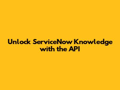 Unlock ServiceNow Knowledge With The API