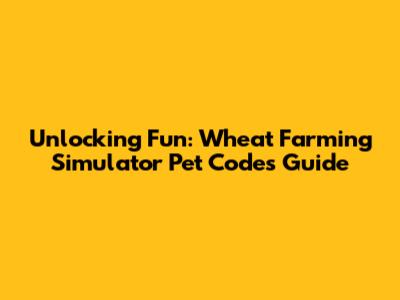 Unlocking Fun: Wheat Farming Simulator Pet Codes Guide