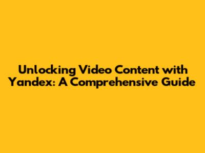 Unlocking Video Content With Yandex: A Comprehensive Guide