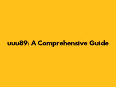 Uuu89: A Comprehensive Guide