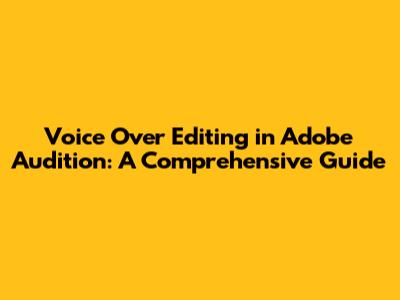 Voice Over Editing In Adobe Audition: A Comprehensive Guide